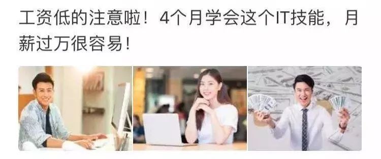 以用户群体的痛点“工资低”为创意的插入点,很大程度上吸引了用户的注意力,并在后面以“月薪过万”等吸引点来满足用户的需求,利用用户好奇的特点形成点击这一行为。在信息流广告投放中,要清楚“我们获取的是潜在用户”,以潜在用户的心理需求、心理特点为投放基础,擅长去利用一些吸引用户的素材作为广告创意展现。