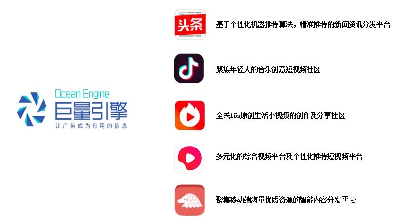 今日头条投放管理平台已正式更名为“巨量引擎”,它整合了今日头条、抖音、火山视频、西瓜视频、穿山甲的投放资源。广告主可以一站式管理广告,提升广告投放效率。