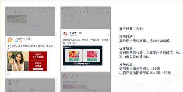 小贷类以及信用卡类的产品和陌陌用户属性匹配度很高,目前在陌陌上面投放的此类产品也非常多,卡牛贷款、融360、招商银行都是长期投放的大客户。信用卡的投放成本约为60元,小贷产品的激活成本在15~30元。