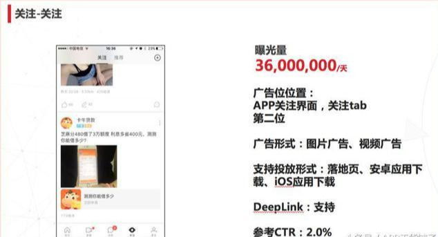 附近动态以及关注广告位展示的信息比较全,支持视频、三图、大图三种表现形式,附近的人支持图标广告。