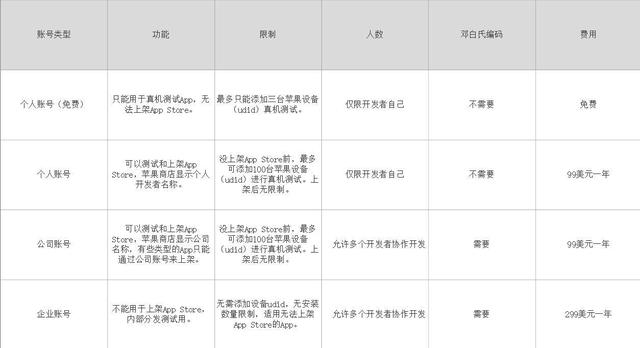 iOS 上架前需要先准备一个开发者账号,目前,苹果开发者账号可分为三种类型:个人、公司、企业,且三者的费用以及权限等都不尽相同。在这三种类型的开发者账号中,个人开发者账号是所需资料最少、最容易申请下来的。