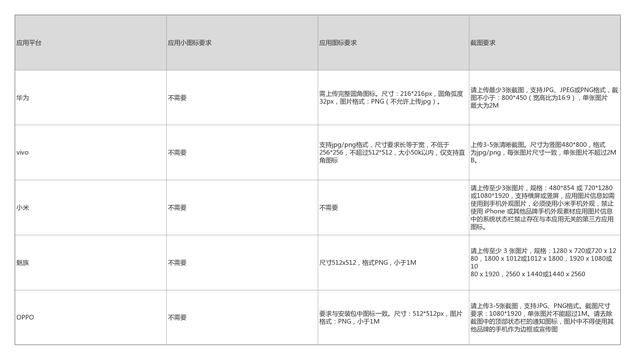 app应用相关信息:已签名的apk软件包、推荐语、应用简介、应用图标(通常要求512x512px)、应用截图(4-5张)。