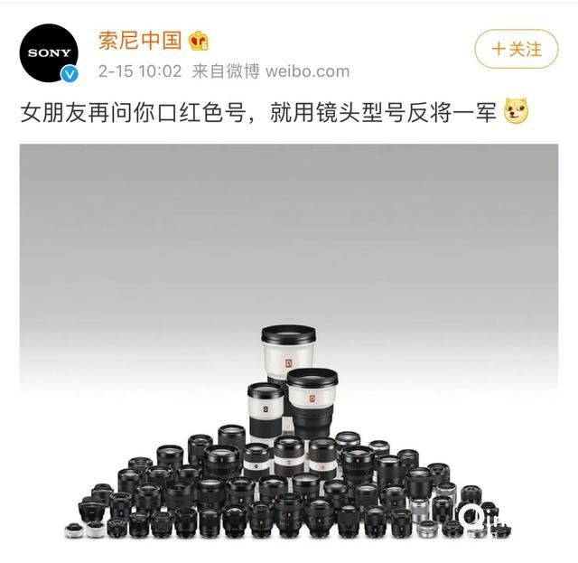 索尼中国今年2月15日发了一条,“女朋友再问你口红色号,就用镜头型号反将一军”。虽然索尼还特意在这条微博后面加了狗头表情,但评论区还是翻车,不少评论表示这句文案涉嫌性别歧视,是对女摄影师的侮辱。