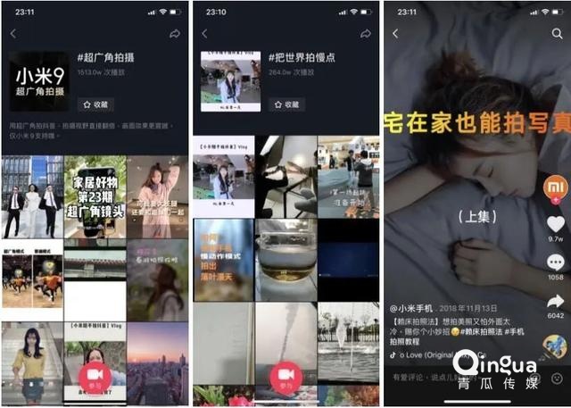 我们看小米发起的各种话题:#赖床拍照法#宅在家里怎么拍写真;#把世界拍慢点#如何用小米手机的慢动作模式拍出戏剧化效果;#超广角拍摄#怎么用超广角模式拍出效果更震撼的画面。这就是小米的戏剧性。