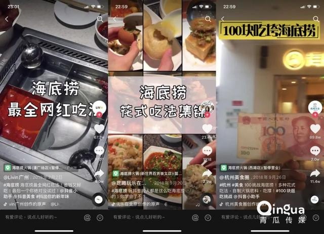 比如我们在抖音里搜海底捞,最火的视频就是关于海底捞的花式吃法集锦、网红吃法合集、100块怎么吃遍海底捞的逛吃挑战。这就是海底捞的戏剧性。