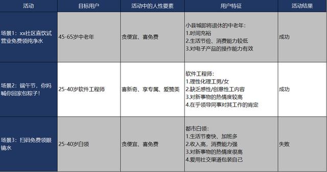 让我们再回到案例中,去复盘三场活动的用户画像。