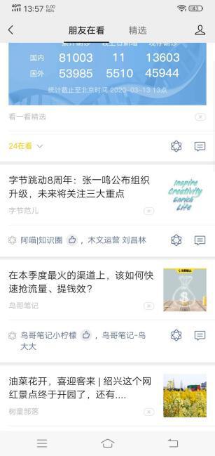至于看一看,看什么?一看不发朋友圈默默点赞的人在看什么?除了他们本身工作任务的在看,还有一些内容是什么?二是看精选,腾讯推荐的精选内容有哪些?不需要看很久,刷下去,看个标题就可以了。这里没有很贴切的例子,就不举例了。