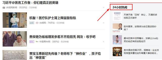今日头条虽说是数据推荐,但因为和抖音同属于字节跳动平台,上面的内容热点,一定程度上也是抖音的热点。打开今日头条PC端首页,大致浏览一下内容标题,重点是关注右侧的24小时热闻。