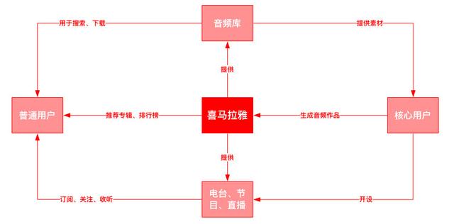 在喜马拉雅平台上,我们经常可以听到合作平台作者有声作品和原创音频制作人及主播的优质音频节目,喜马拉雅给予他们部分流量,增加曝光率。优质的音频节目被听众逐渐认可,最终平台出现各类头部内容生产者,头部内容生产者又再次带来用户,形成良性循环。