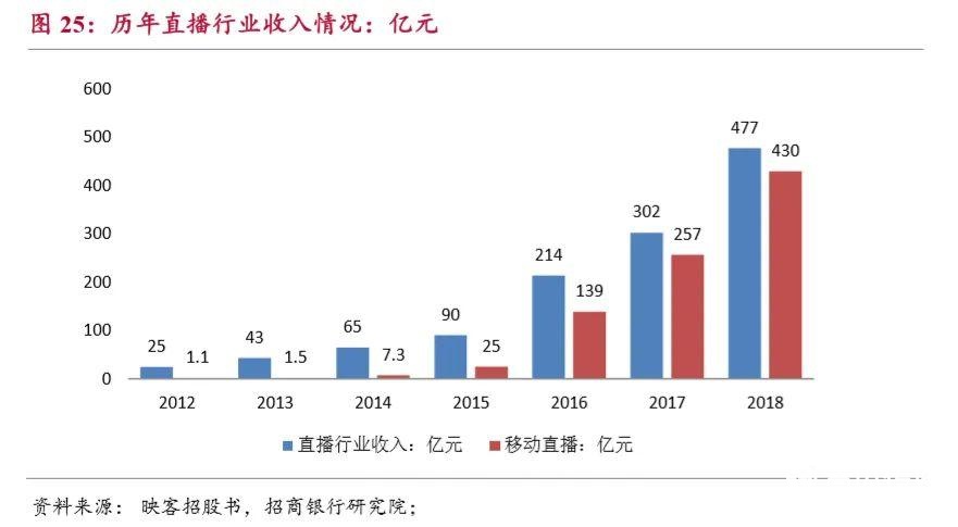 根据映客招股说明书中的一份数据,直播行业每年的市场规模在几百亿左右。
