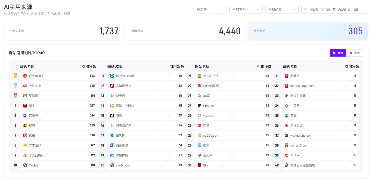 不知道AI到底从哪些网站引用了你的信息?引用质量如何?下文有专业工具帮你一键诊断来源分布