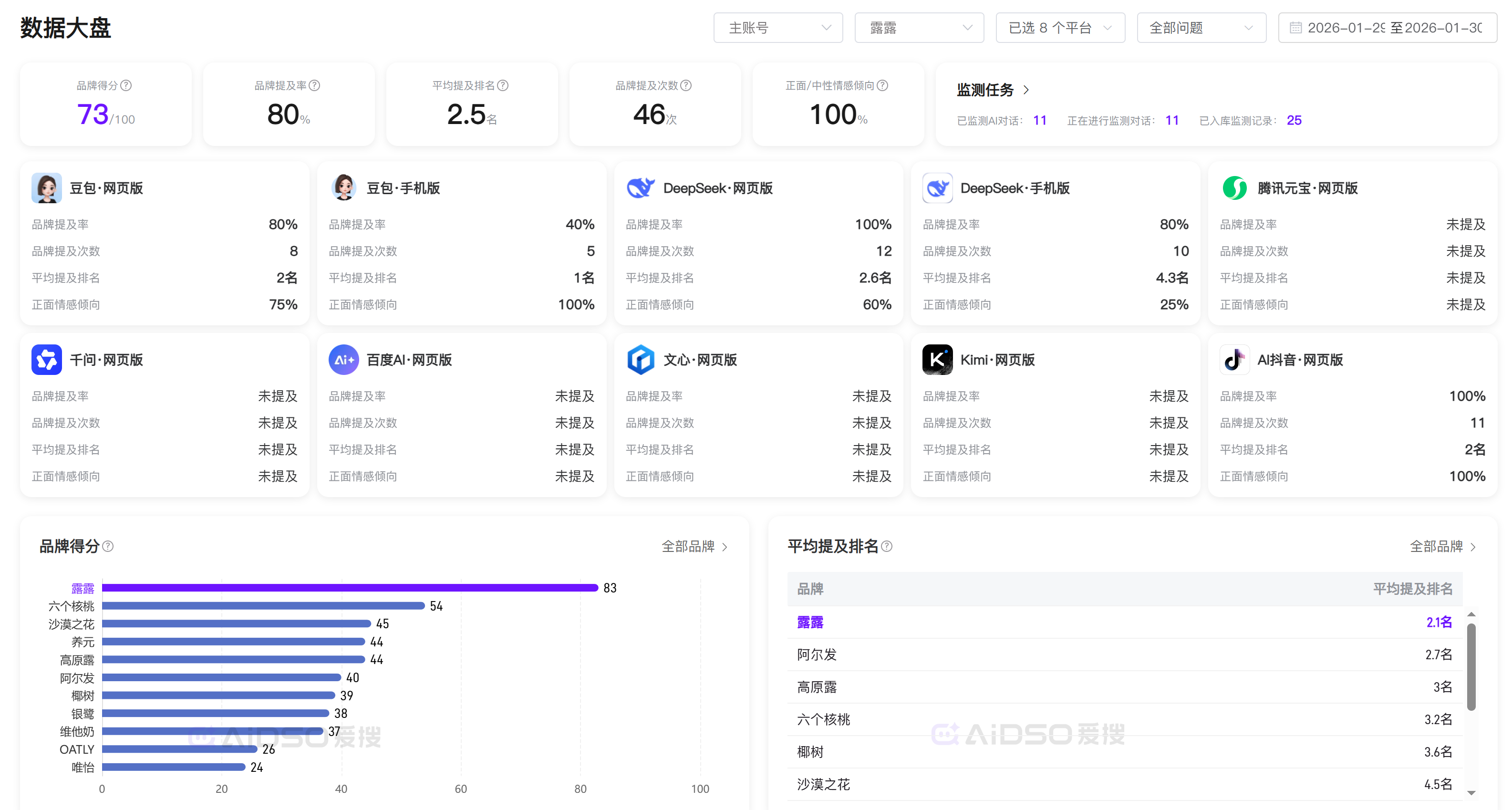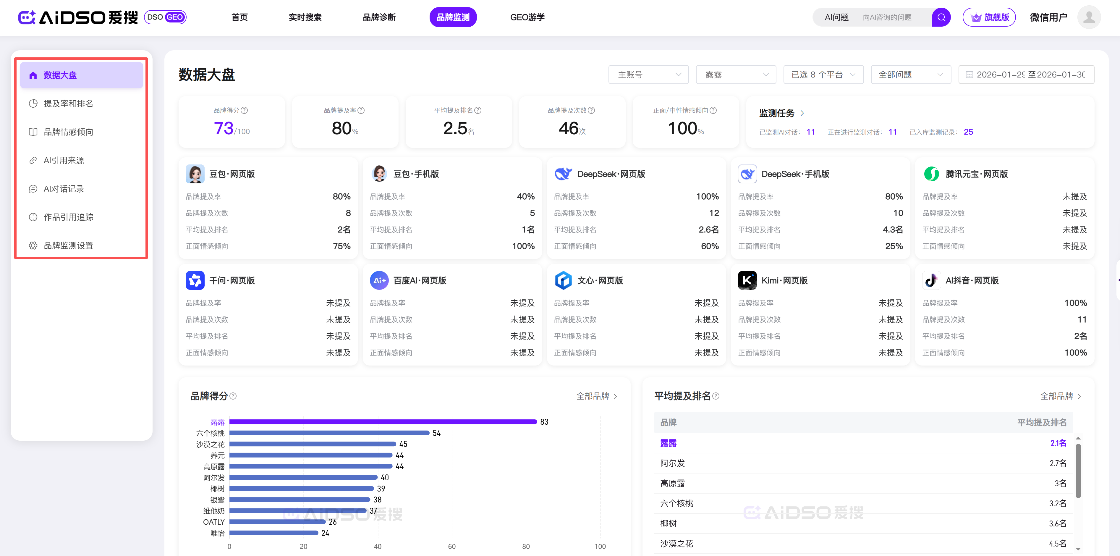 AIDSO爱搜的“品牌监测”功能就是为此而生。它将“品牌诊断”中的配置固化下来,变成一个长期、自动化的监测系统。