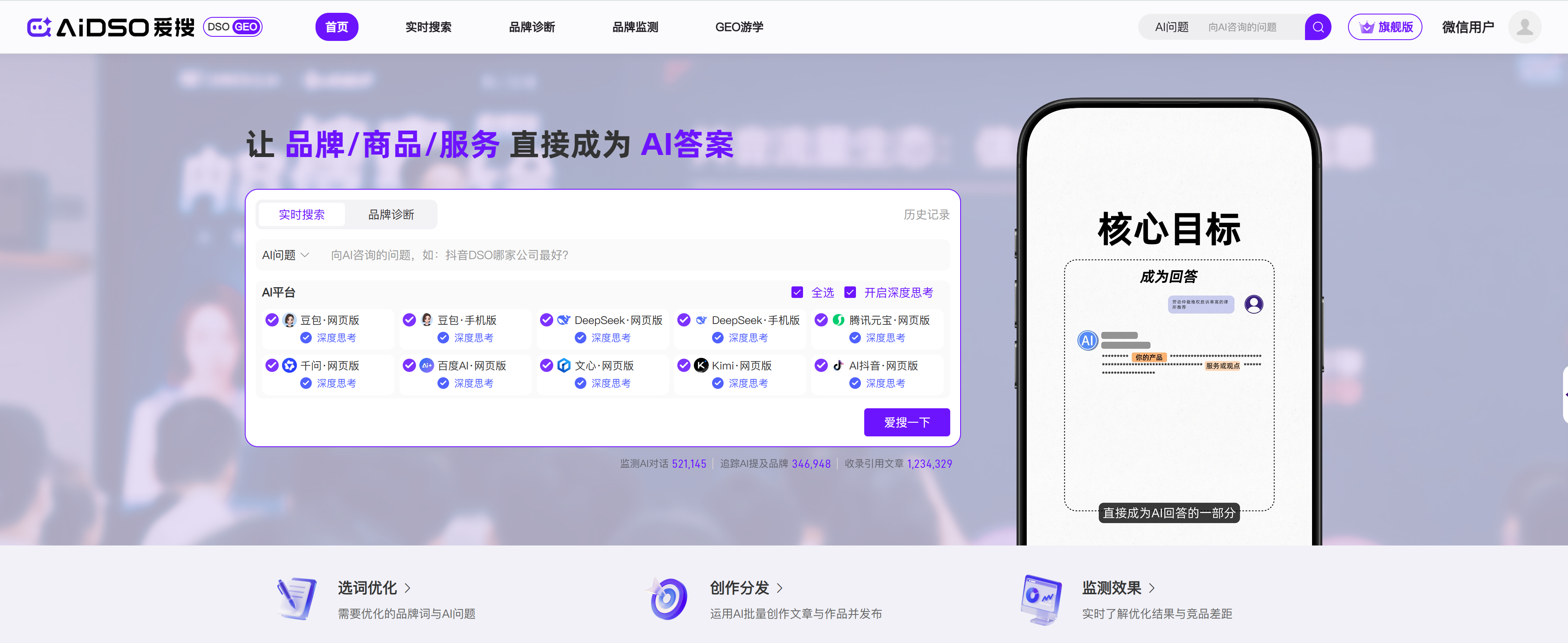 知道了GEO的重要性,下一步就是具体操作。一个有效的AI搜索排名优化流程可以分为三步:快速诊断、全面体检和持续监测。我们可以借助像AIDSO爱搜这样的专业GEO工具来完成这些步骤。