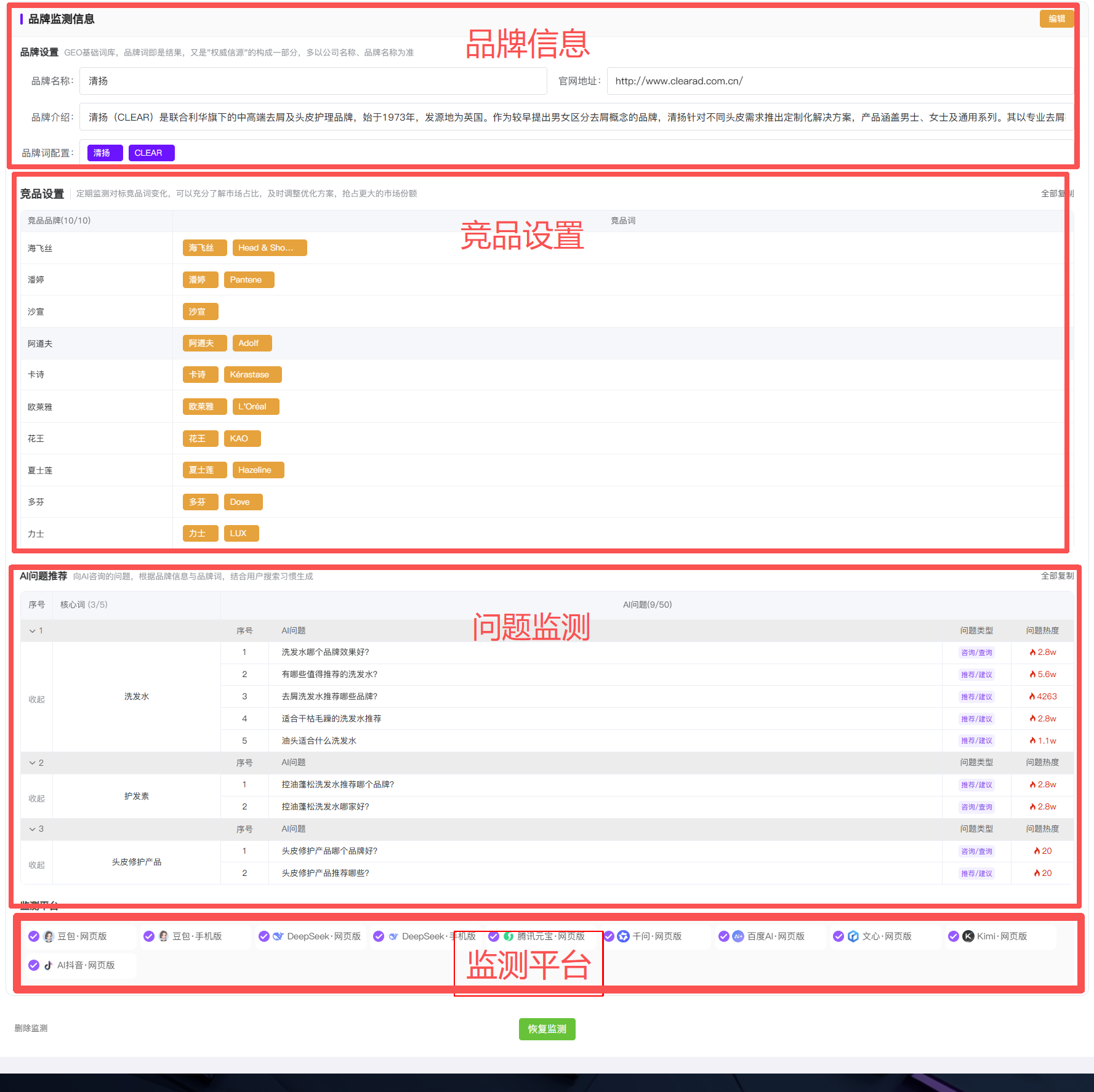 - 量化效果:持续追踪品牌表现,让你能够看清优化效果。