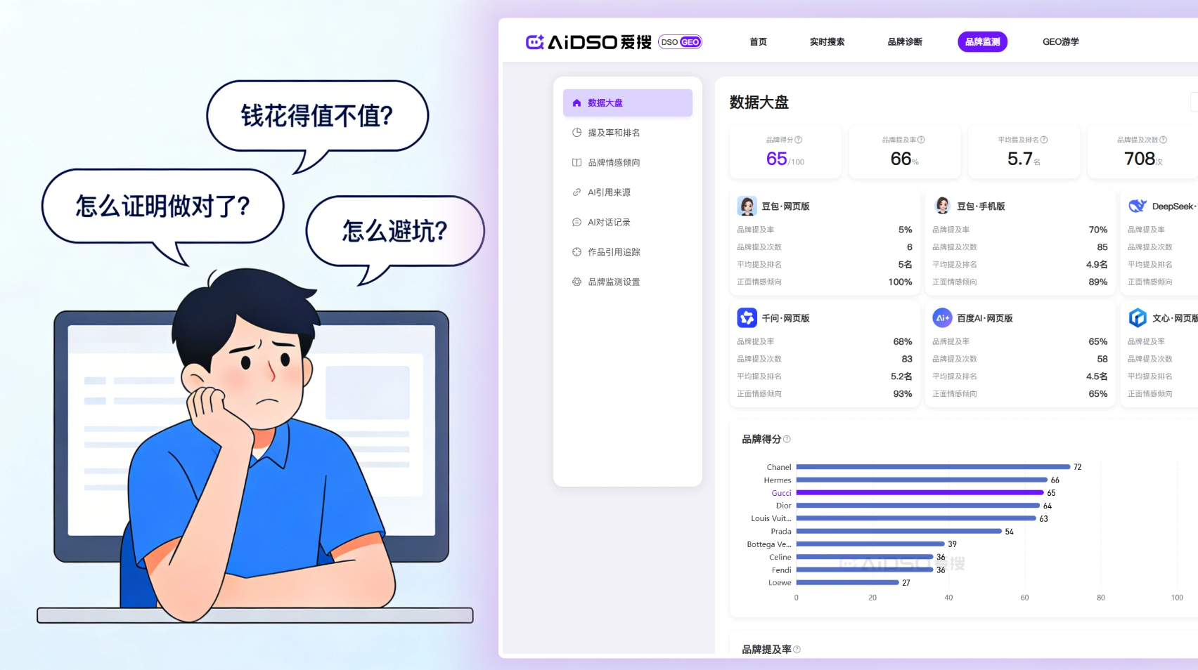 - 怎么看:AIDSO爱搜的语义分析功能,能自动判断AI提及你品牌时的情感色彩——是“强力推荐”、“客观介绍”,还是“提及缺点”、“负面警示”