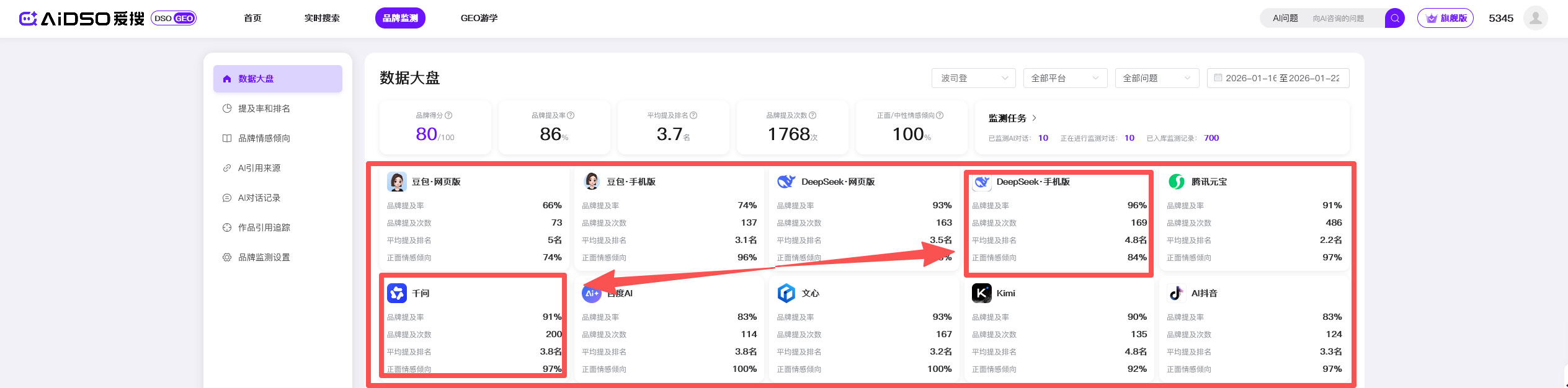 - 关联分析: 在AIDSO爱搜的品牌监测中,结合分析“提及率排名”和“引用来源分布”。