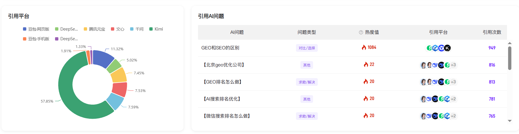 - 第二梯队 - 百家号(文心 19%)、头条(豆包 14%)、知乎