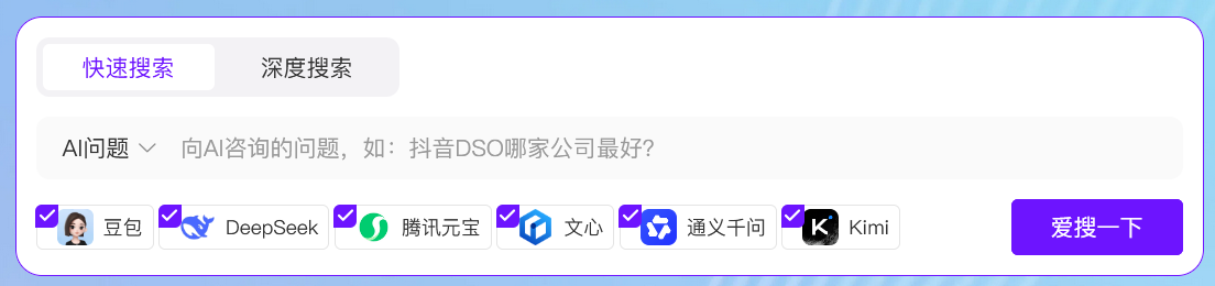 - 爱搜快速搜索 - 检测6大 AI 平台曝光