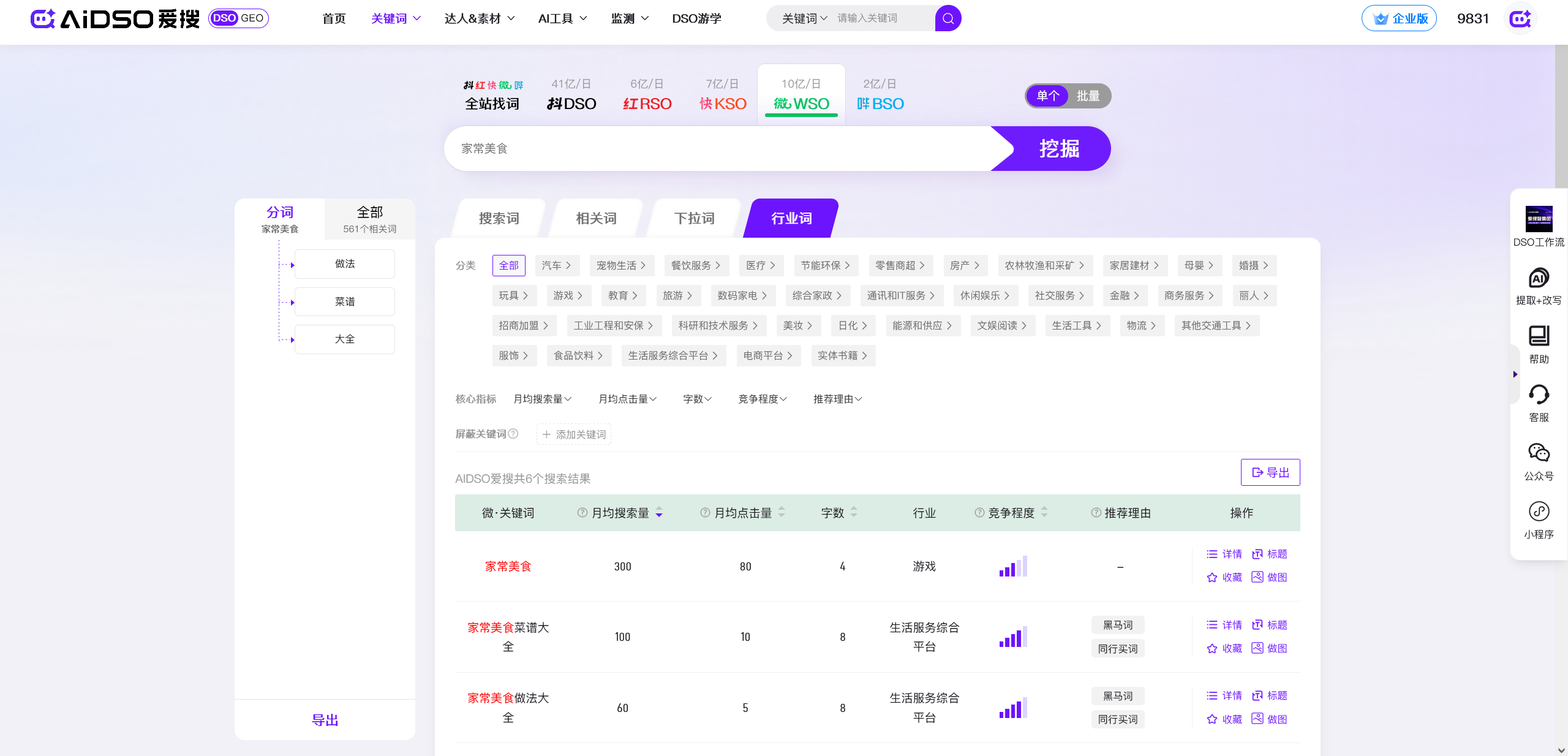 利用AIDSO爱搜平台的“微信行业词库”功能,筛选出月均搜索量与竞争度匹配的核心词+长尾词组合(如“家常美食”+“家常美食菜谱大全做法”),确保关键词自然融入内容逻辑。AIDSO爱搜的AI改写功能可辅助优化表述,让关键词分布更均匀,同时保障阅读流畅性