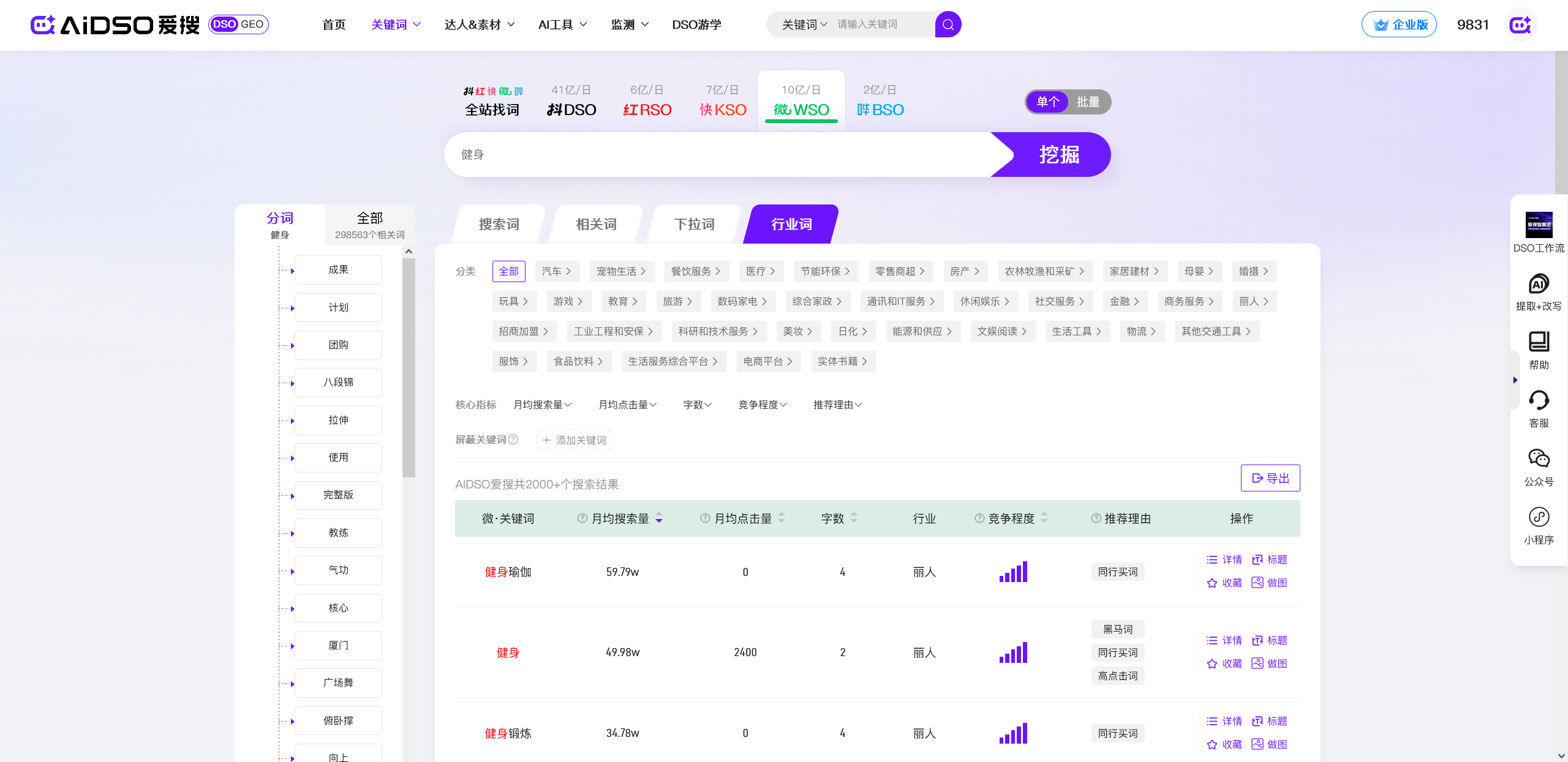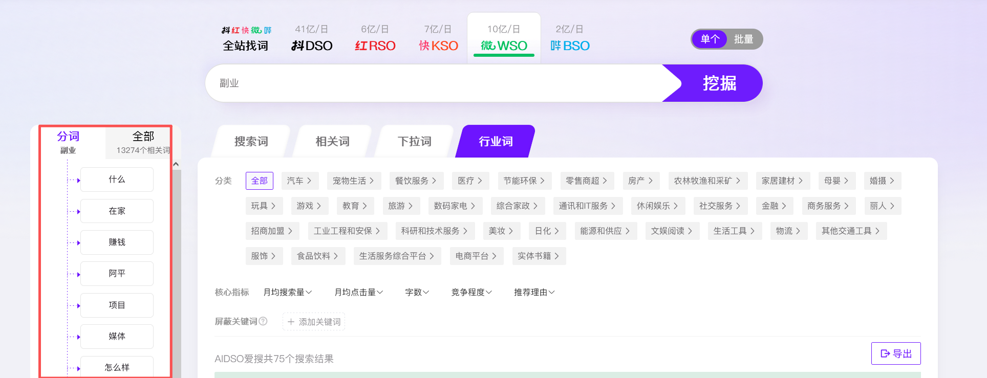 实操要点:通过AIDSO爱搜的“全站找词”功能挖掘行业蓝海长尾词,筛选出月均搜索量≥500、竞争度低的词汇组合,确保名称同时包含核心词与目标用户场景,比如面向宝妈群体的账号可命名“宝妈副业微信SEO变现指南”