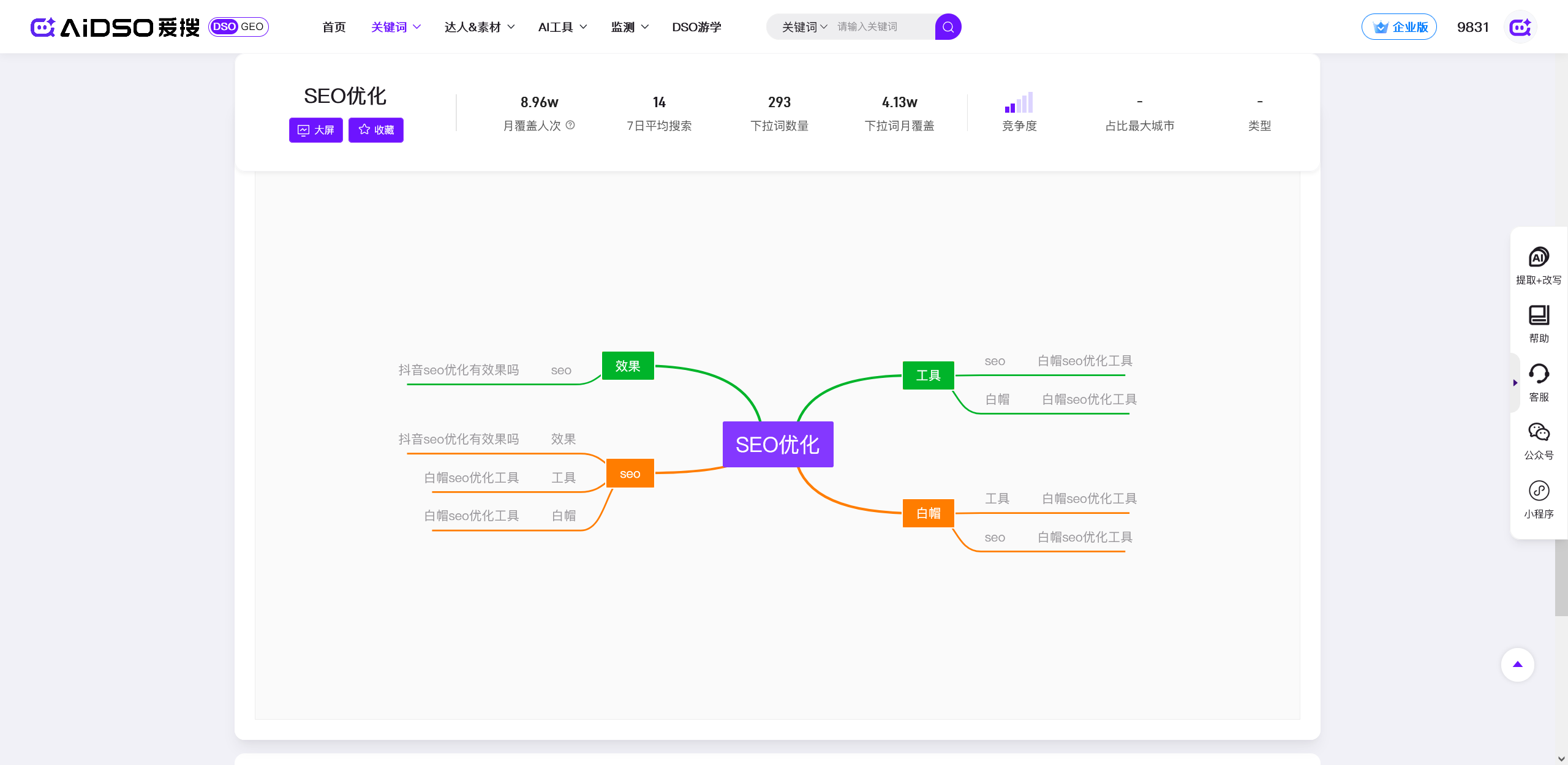 建立“数据监测-分析-优化”闭环,借助AIDSO爱搜平台的“多平台关键词流量挖掘”功能,精准获取微信生态内关键词的月均搜索量、点击量、竞争度等数据,同时结合微信后台的搜索来源、用户互动数据,锁定高价值优化方向。例如通过AIDSO爱搜发现“微信SEO冷启动技巧”搜索量飙升,可快速围绕该主题创作内容