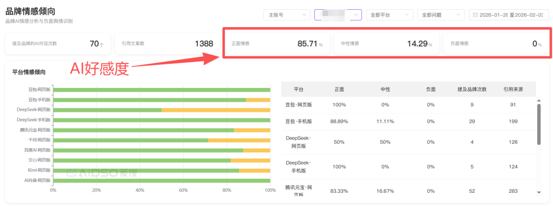 情感倾向监测:系统会自动识别AI对你是“夸”还是“踩”,帮你规避被AI拉黑的风险。