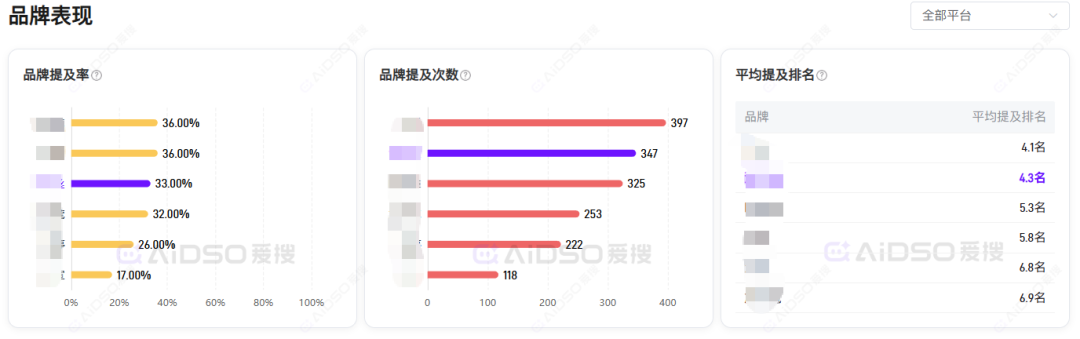 提及率分析:看看在AI的建议中,竞品的曝光占比是不是远高于你?