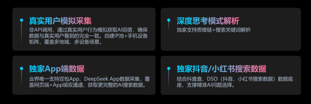 移动端,才是GEO行业海量用户的真实入口,更是数据价值的核心来源。目前市面上绝大多数竞品,仍停留在PC端数据层面,部分甚至直接调用B端API数据,根本无法真实还原用户实际使用场景、真实需求与所见回答信息,导致数据参考价值大打折扣,难以支撑精细化运营与KA客户服务。