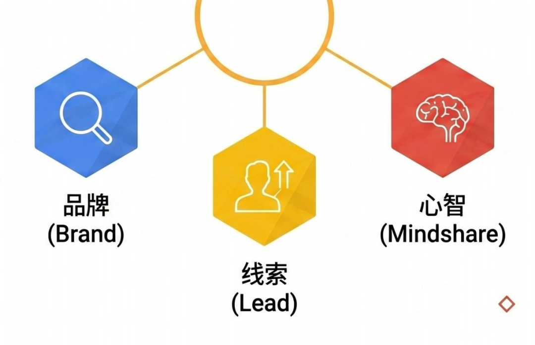品牌:提升 AI 端认知占位 心智:占领用户 AI 决策心智 线索:带来咨询、转化等商业结果