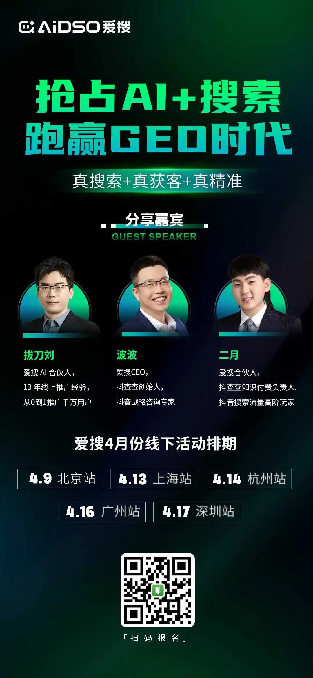 AIDSO爱搜:GEO数据分析工具,核心功能:快速搜索+品牌诊断+品牌监测。已实现对阿里通义千问、月之暗面Kimi、腾讯元宝、字节豆包、百度文心一言、深度求索DeepSeek及其多终端与“AI抖音”在内的十大主流AI平台的全景覆盖。欢迎体验:geo.aidso.com,添加小助理演示工具以及参与线下活动,同时加群和领取各种福利: