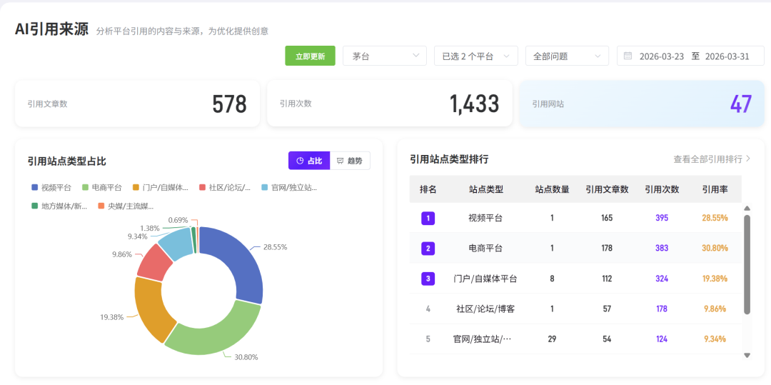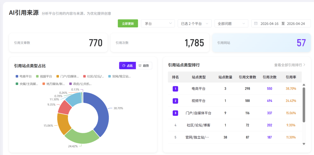 实战结论: GEO优化动作必须从单点爆破转向多点共识。 官网、权威媒体、垂直平台、行业百科的信息统一,才是AI信任你的关键。数据分析能够及时帮我们掌控 GEO 优化全局。