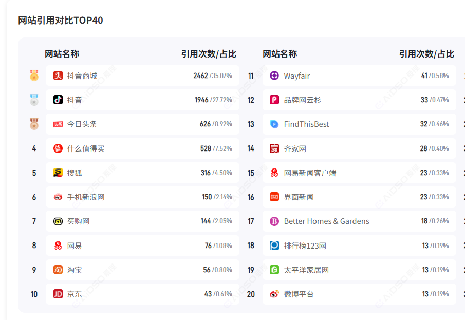 我们看下2026年3月-4月豆包的引用源变化情况数据对比(来自某品牌沙发的行业监测数据)。