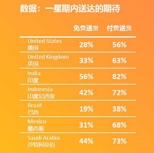 跨境购物者对配送的期待: