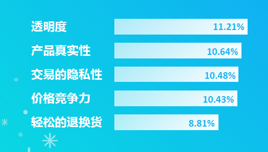 跨境购物者购买国外商品时会考量的最重要的五个因素: