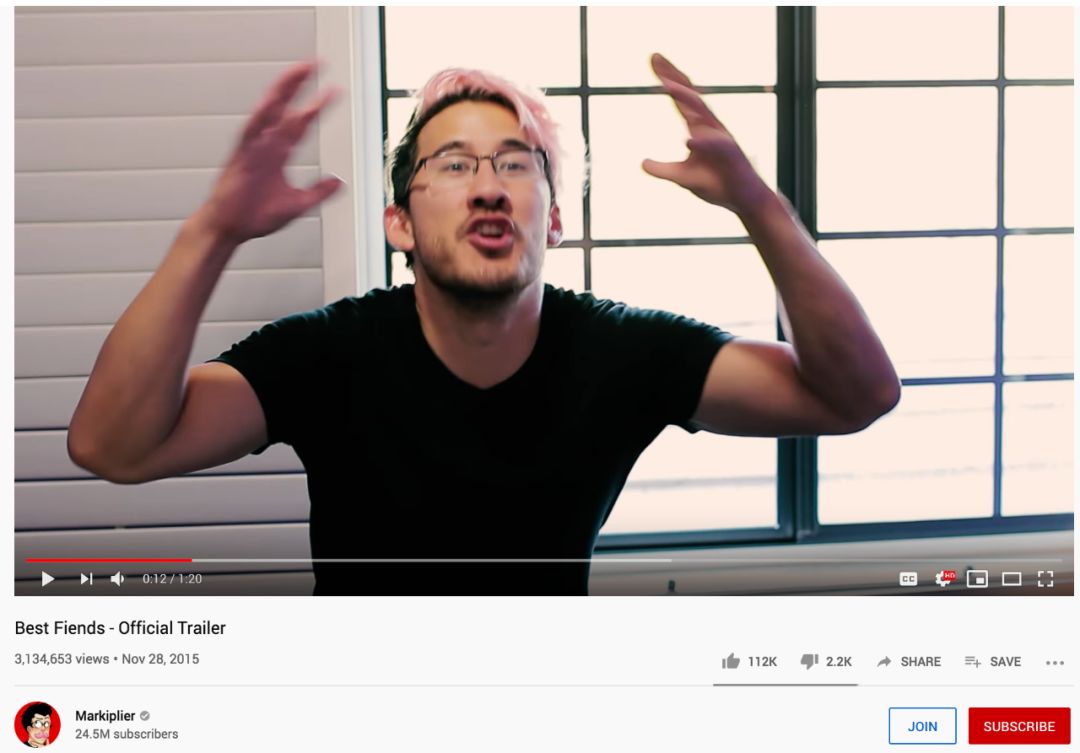 其中一个案例是一个国外知名的网红叫Markiplier,他给中国厂商做了不少营销,在youtube上仅次于全球最大的Youtuber PewDiePie,拥有2500万的粉丝,粉丝对他都很死忠。他的频道会做各种创意的内容,经常评测不同的游戏:独立游戏、手游、PC、 Console。这个游戏叫做“Best fiends”,是friends变体,这是一个三消游戏,网红做了一个“official trailer”,在现实生活中邀请他的朋友中演绎了一个trailer ,模仿游戏中两个虫子之间的对话,恶搞游戏。粉丝会觉得很好奇这个trailer 在讲什么,第二用有趣的方式呈现,粉丝更想去看,很自然地的拼在他的视频里,上线有300万的views。 如果通常只是玩游戏的广告,很多人不愿意去看,但做trailer是很有创意的营销。
