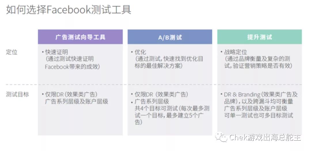 接下来我们将会分别介绍Facebook提供的三大广告测试工具,包括广告测试向导工具、A/B测试及提升测试。