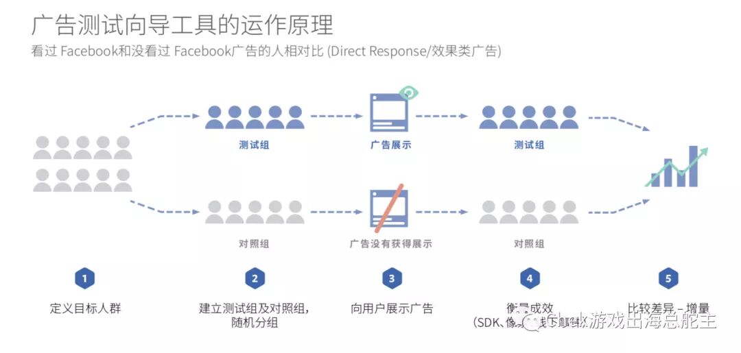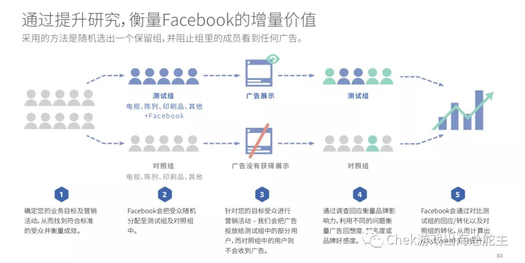 - 了解Facebook广告的用处:对比看过和没看过Facebook广告的受众,了解他们在增量方面的差异。