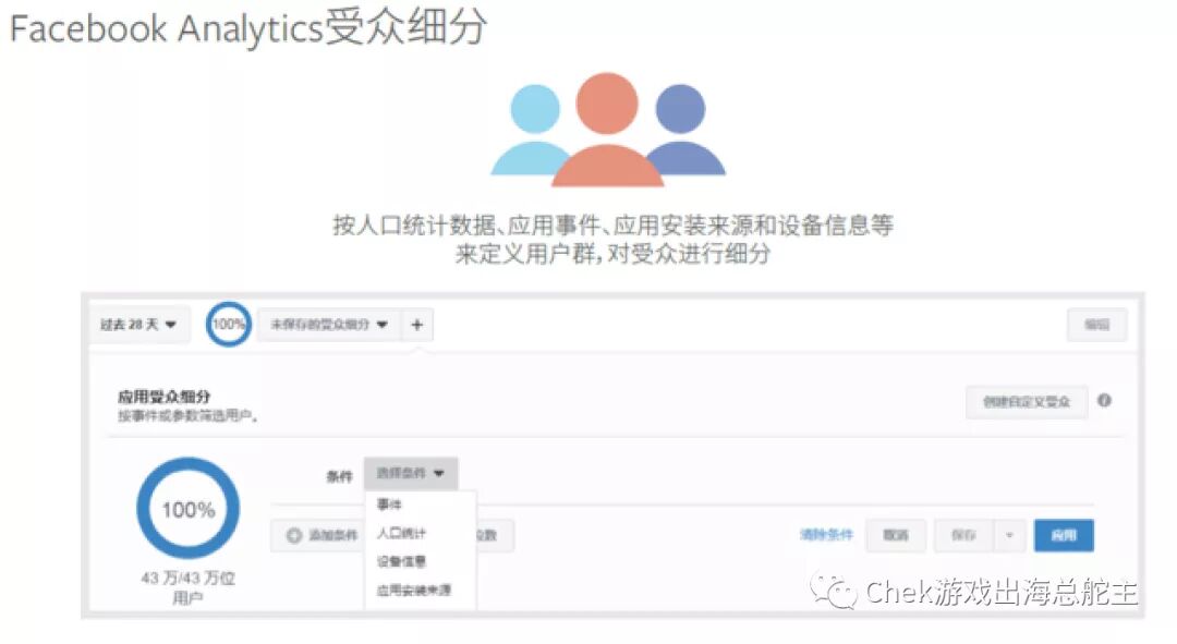 3. 受众细分:可以按人口统计数据、应用事件、应用安装来源和设备信息等定义用户群,对受众进行细分