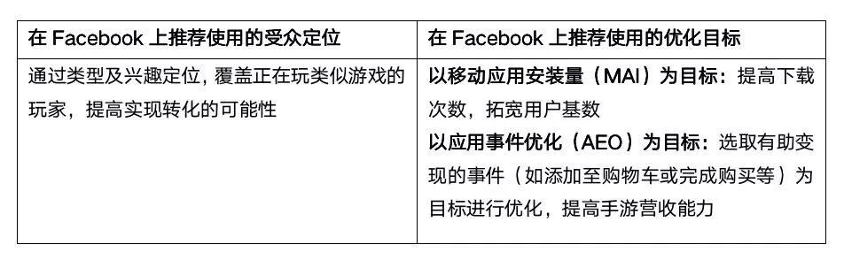 概括来说,在三个试发阶段里,厂商所做的准备功夫,不外乎查缺补漏、优化迭代。而在Facebook给出的建议当中,它还给出海厂商带来了一些可供参考的投放地点、关键性指标,由此明确可以努力的方向。