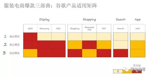 以下也总结了服装电商爆款三部曲:Google谷歌产品适用矩阵。