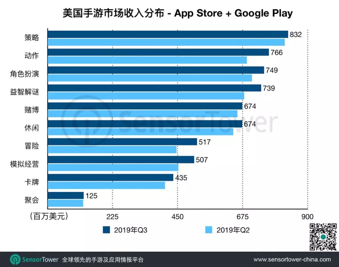 策略手游仍是美国市场收入最高的品类,Q3收入超过8.3亿美元,占总收入的20%,但增速明显放缓。
