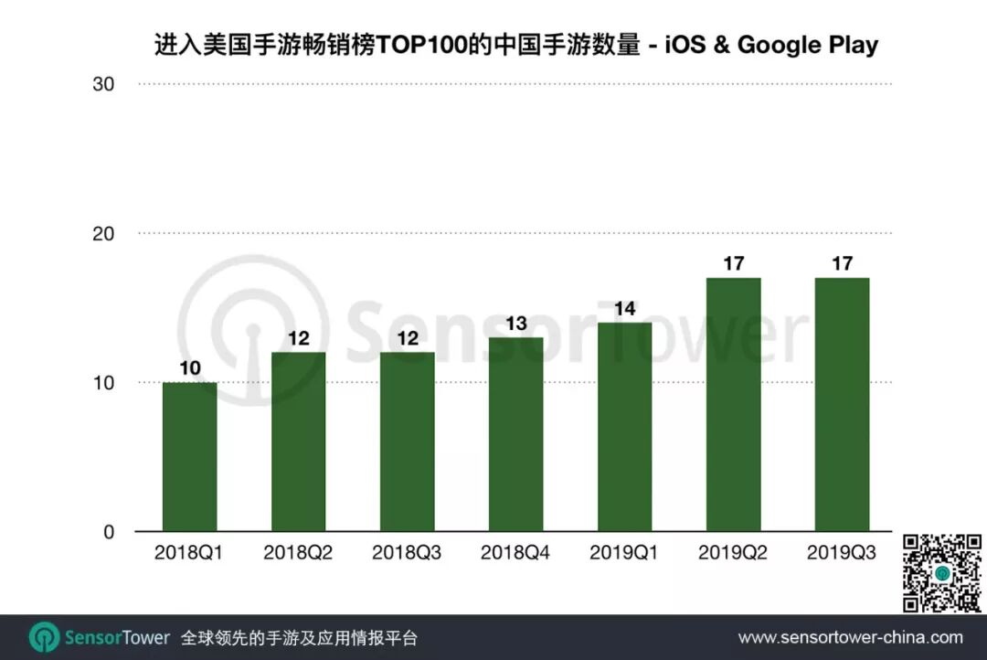 进入美国市场收入TOP100的中国手游维持在17款,合计贡献4.1亿美元,同比增长127.8%,环比增长5.1%。