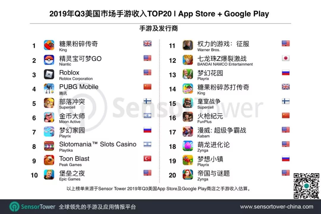 在Q3美国手游畅销榜中,《糖果粉碎传奇》继续蝉联冠军。在Top20手游收入榜中,消除游戏多达6款。