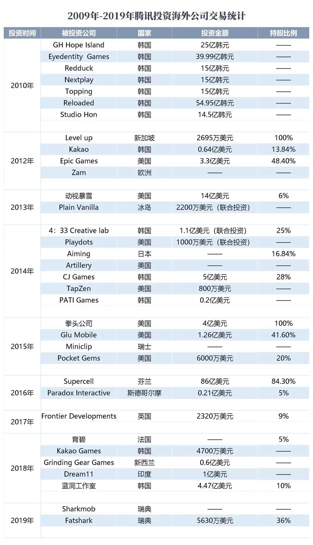 (手游那点事整理了2009-2019腾讯游戏的部分投资)