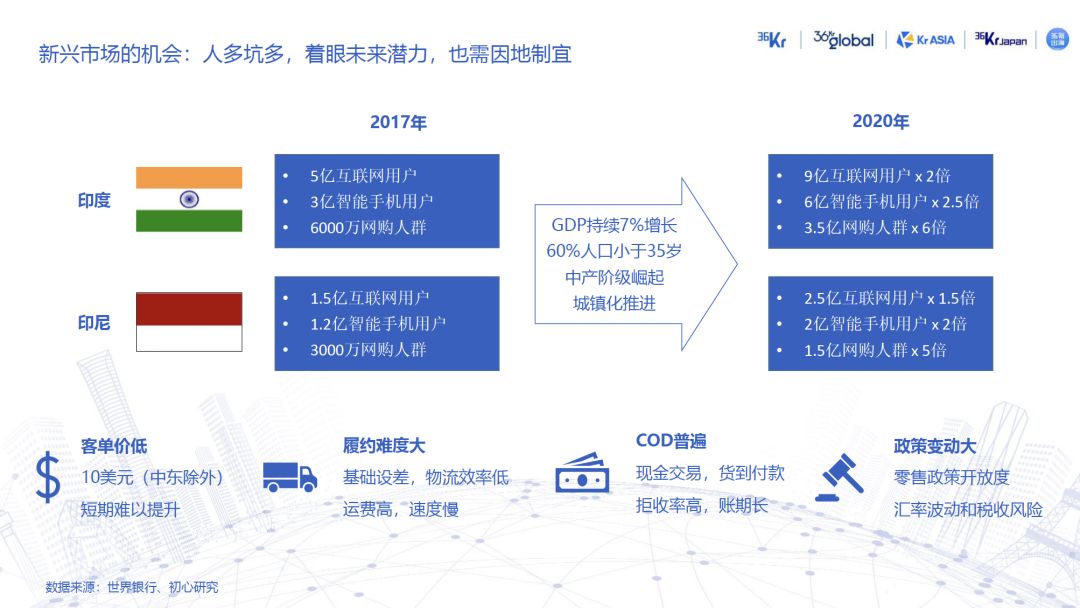 新兴市场是包括我们在内的投资机构重点花精力耕耘的。因为人口多,人多的地方代表有红利,而且年轻人特别多,对应的未来消费的主力人群越来越大。但是人多坑也多,比如说客单价非常低,去年一个订单平均差不多10美金。第二是履约难度大。第三他们现金交易国家,我们的货卖给当地的消费者前是收不到款的,需要货到付款,这样对于消费者来说不履约的概率很高,因为我收到货了,我可能觉得不好,我心情不好我现在就不要了,这些怎么办?那边如果进行二次销售的难度是很大的,你面对在当地开一个二次销售的仓等等一系列的问题,这些是对于新兴市场最大的一个坑所在,另外政策的变动也很大,无论是对于零售的还是外汇,税务方面都会有影响。