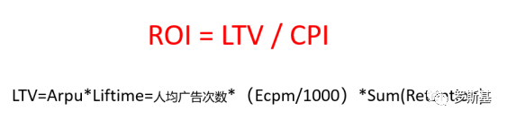 而随着产品增多,竞争自然也会激烈,买量CPI上涨也会很快,特别现在游戏市场变化增大,CPI成本是最终的问题。我们看这样一个ROI的公式会清晰些,优化ROI可以从多个角度切入:降低CPI,提升ECPM,提升人均广告次数,提升留存等等。CPI是一个比较重要的数据,因为LTV比较受限制,而当CPI提升,就会对ROI有比较大的影响。