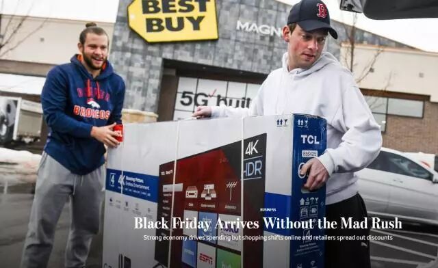在“黑五”当天,一篇名为《黑五到来,不再有疯狂购物》的文章,出现在美国主流财经媒体《华尔街日报》上,引发关注。文章中,经济学家在预测2020年消费放缓的前景时,就已经开始将其与08年经济危机时的情况相提并论了,并且“黑五”为这一估测提供了有力依据。